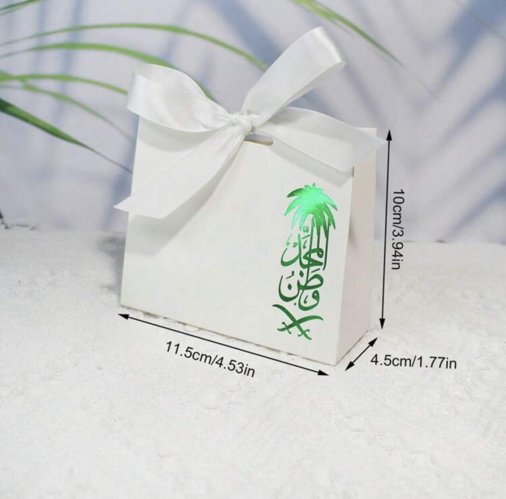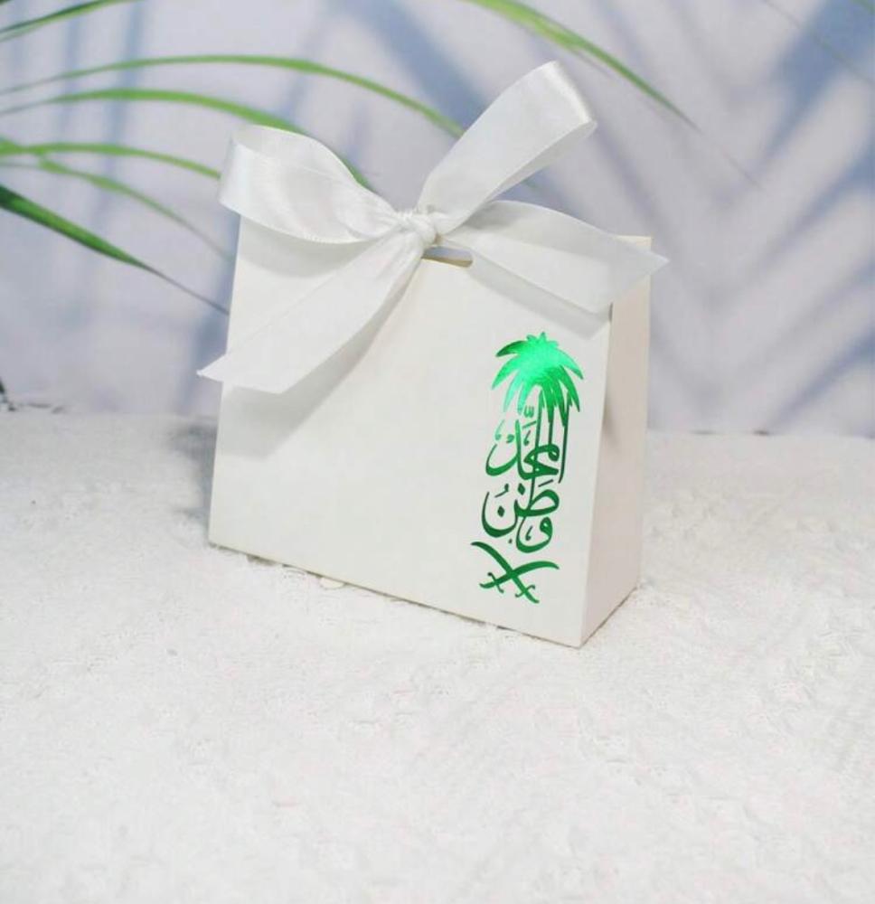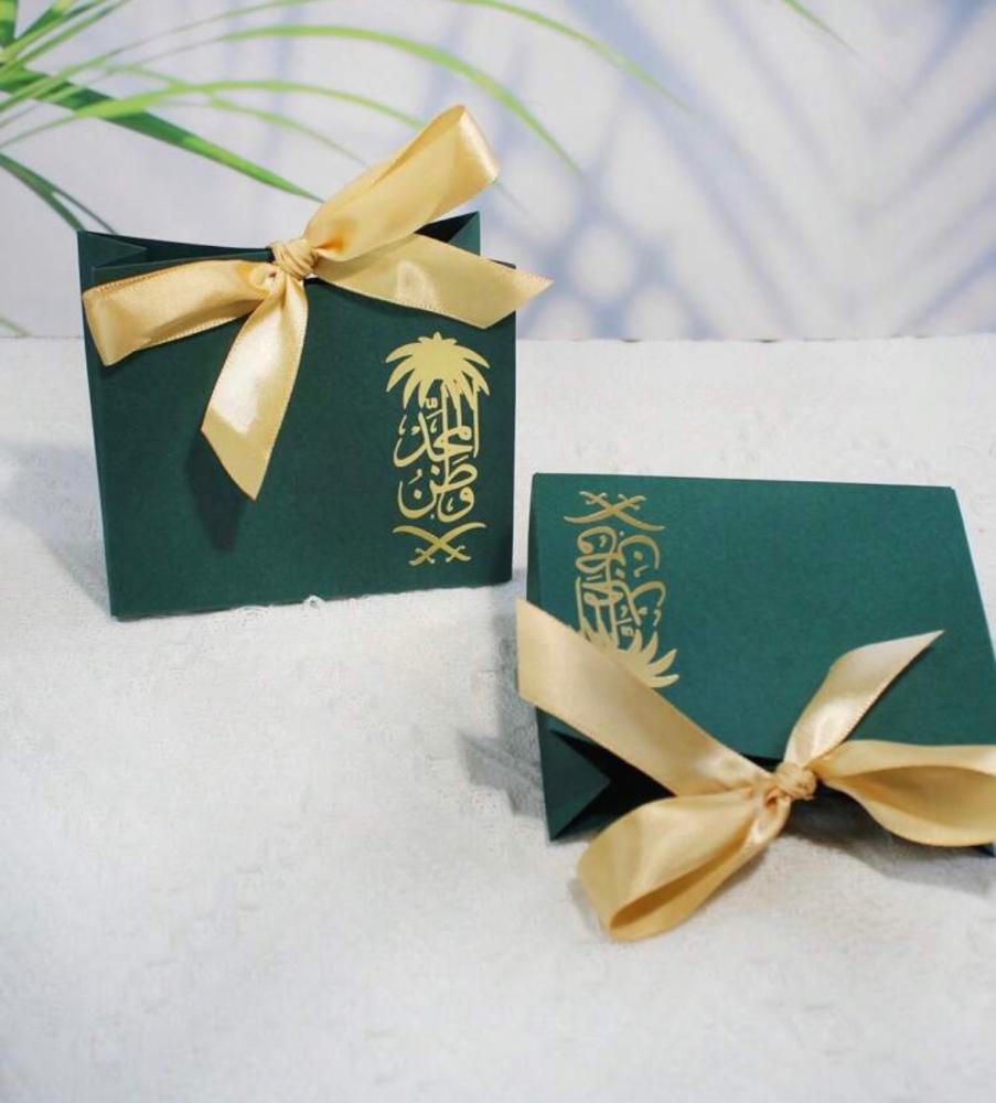 علب توزيعات اليوم الوطني بعبارة وطن المجد
