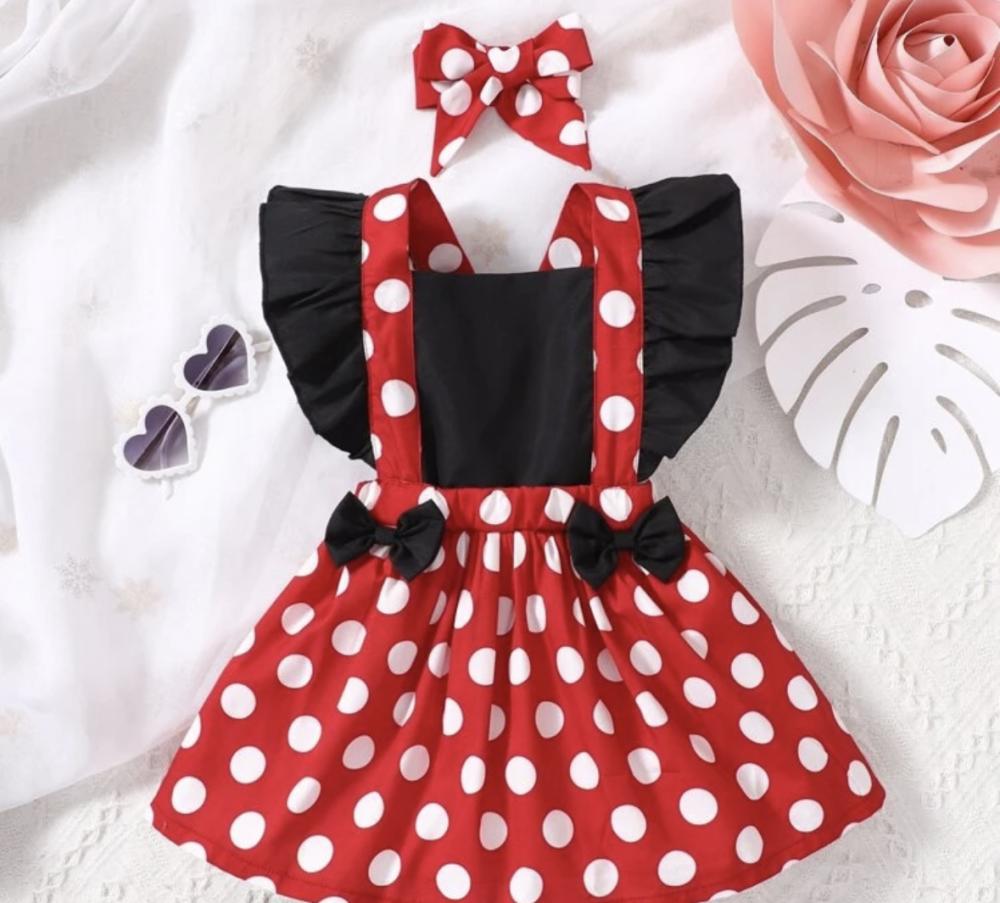 فستان ميني ماوس الأحمر مع تصميم فريد يجعل طفلك يتألق كما لو كانت الشخصية المحبوبة! مع الرباط الجميل الذي يأتي مع الفستان، سيكون اختيارًا مثاليًا لأي مناسبة مميزة أو حفلة. فاجئي طفلك بهذا الزي الرائع.