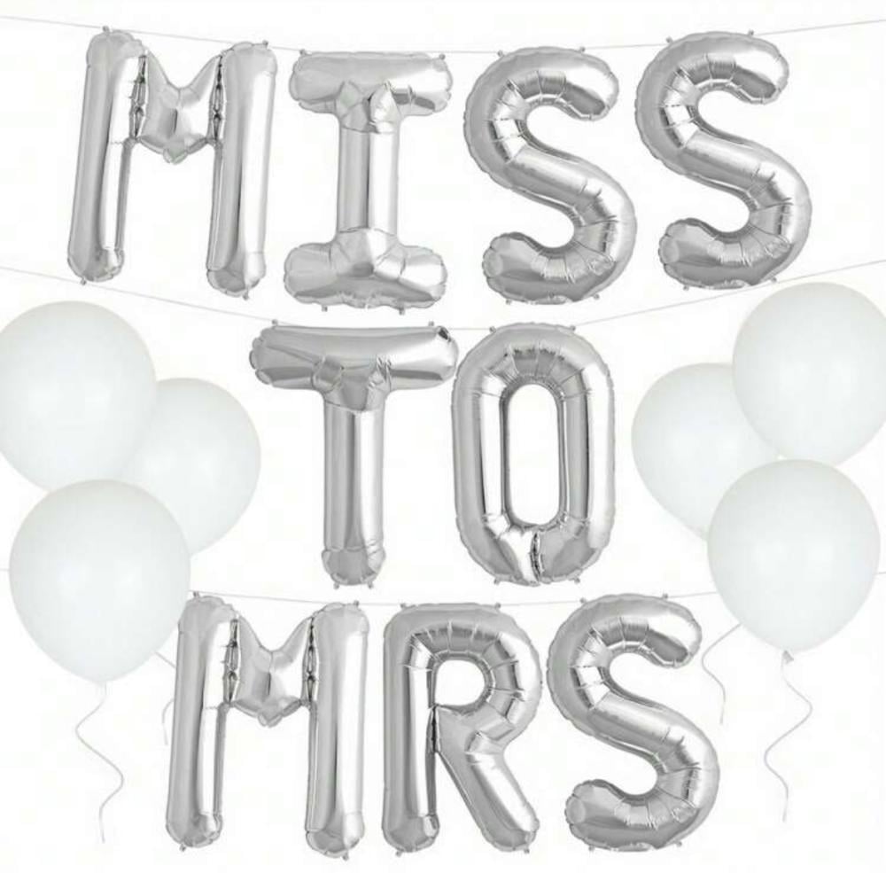 9 بالونات فضية بعبارة miss to mrs مقاس 16 انش